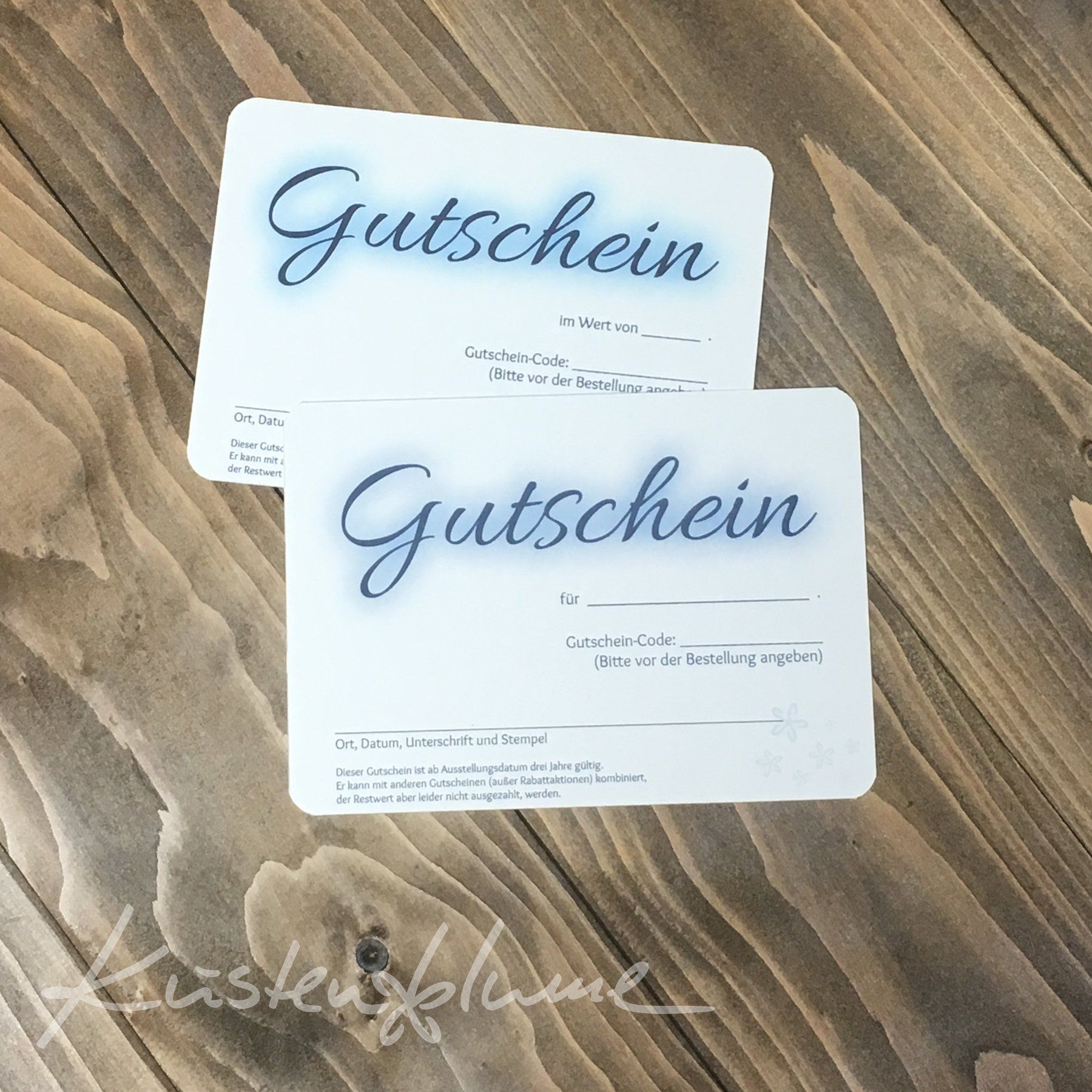 Dann bieten wir natürlich auch Gutscheine an. Ob für ein bestimmtes Produkt oder im Wert von, ist dabei ganz euch überlassen.