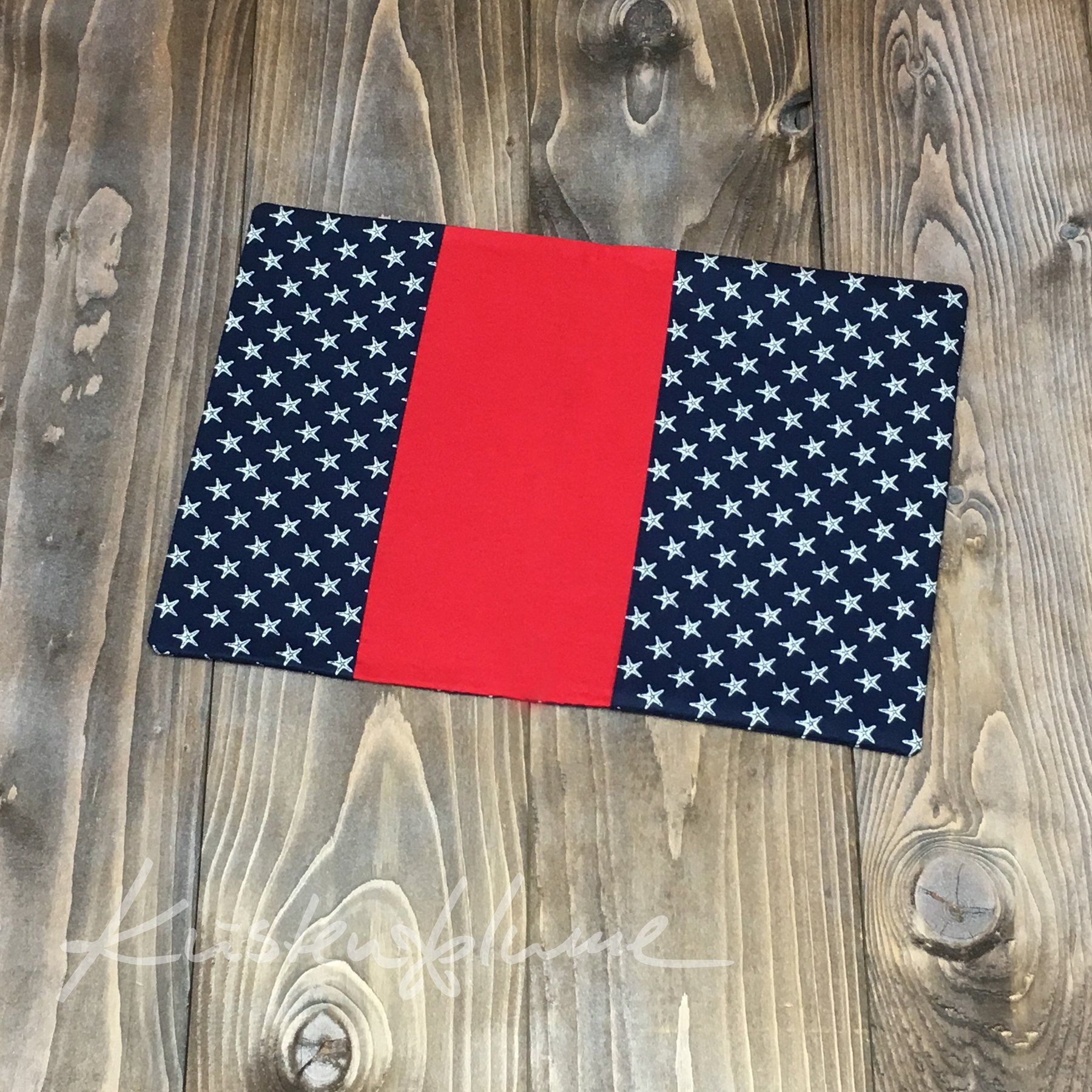 Materialien: Baumwolle, Vlieseline, Flockfolie, optional Gummiband und Holzperle
